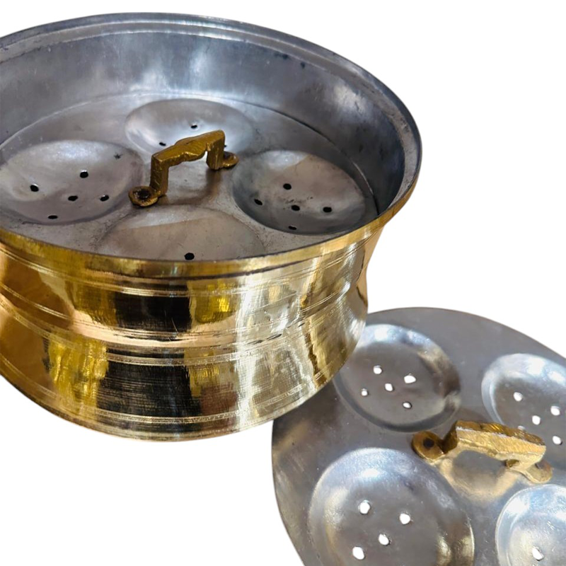 Authentic Brass Idli Steamer – 8 Moulds | Traditional South Indian Idli Cooker | Durable & Eco-Friendly Cookware